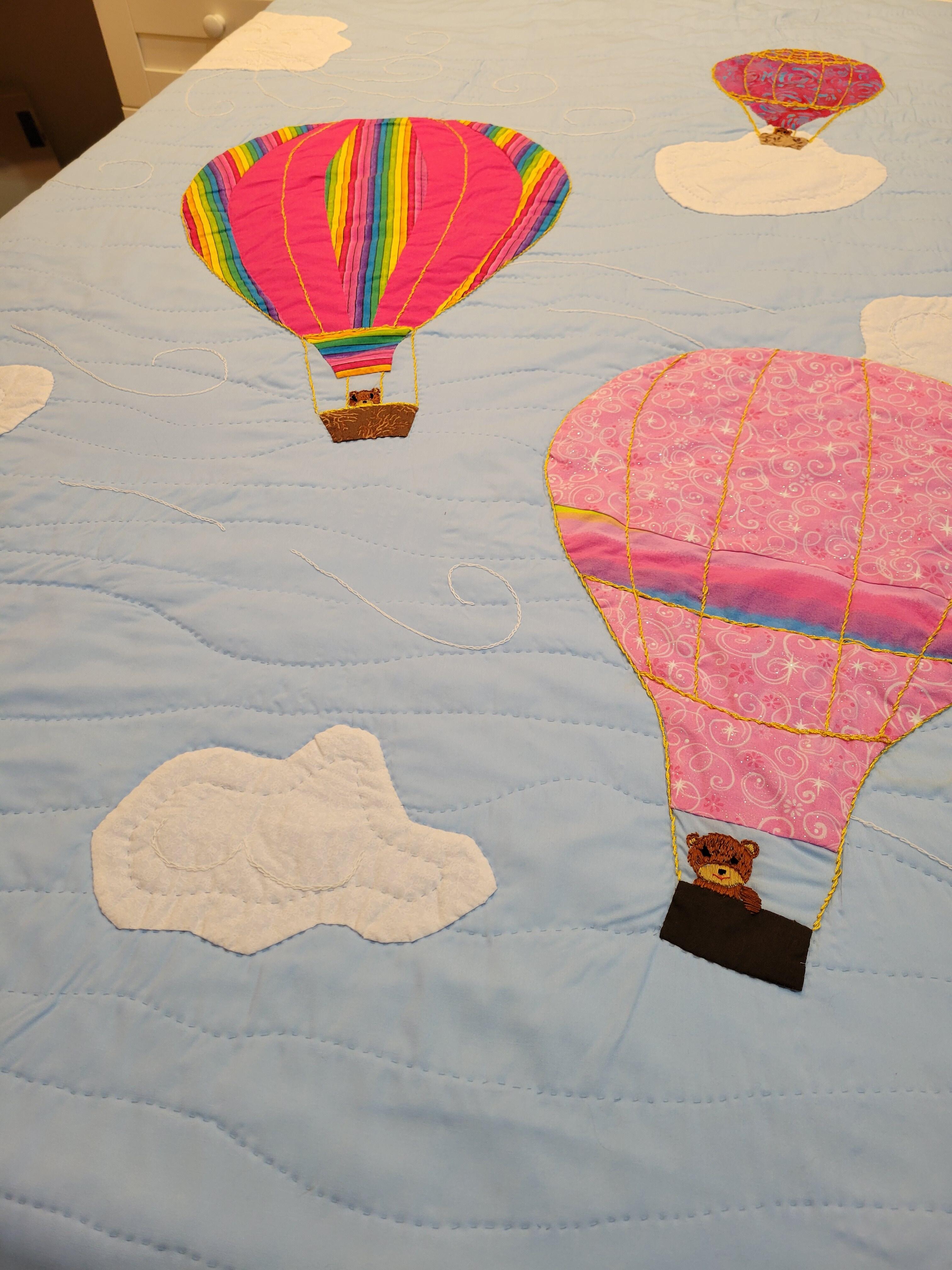 Teddy Bear Balloons flying in wind quilt Home › Forums › Makers Make › Teddy Bear Balloons flying in wind quilt Tagged: teddy bear balloons This topic has 0 replies, 1 voice, and was last updated 2 days ago by pauw-barden@comcast.net. Viewing 0 reply threads Author Posts October 11, 2025 at 3:43 pm #5447 pauw-barden@comcast.netParticipant Here’s a new baby quilt–teddy bears pilot hot air balloons through a windy sky. A friend has a new baby granddaughter and this one’s for her. Author Posts Viewing 0 reply threads You must be logged in to reply to this topic. Log In Username: Password: Keep me signed in Log In
