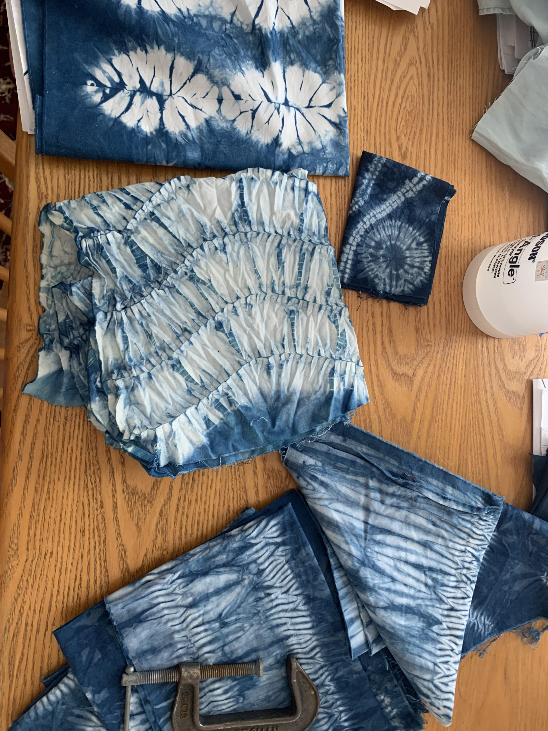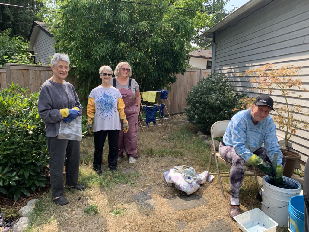 In early September, several members of the Special Interest Group “SWAG” (Seattle Wearable Arts Group) gathered at the home of Catherine Knowlson for indigo-dyeing. The dyeing session was the third workshop that Catherine conducted on Shibori, the ancient Japanese stitching-and-dyeing technique that is the forerunner of tie-dye.